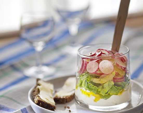 Déposez dessus un peu de tartare de radis-beurre et étalez-le.