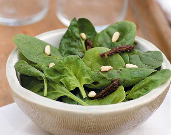 Au moment de servir, répartir les billes de melon sur la tarte. Décorer en finition avec des pignons de pin grillés et la roquette ciselée.