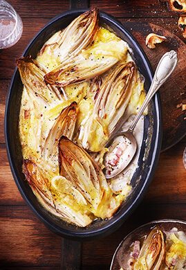 • Coupez le reblochon en lamelles et alternez les demi-endives dans le plat. Enfournez pour 20 minutes de cuisson.