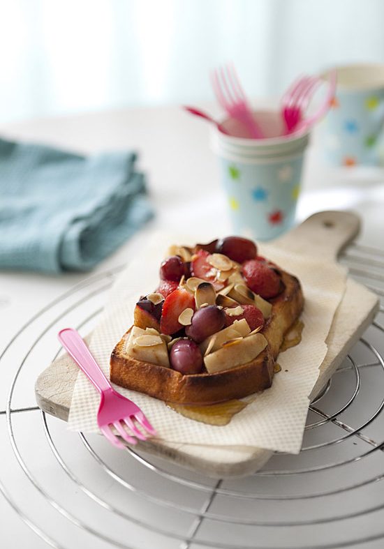 - Garnis harmonieusement chaque tartine d'un assortiment de fruits.