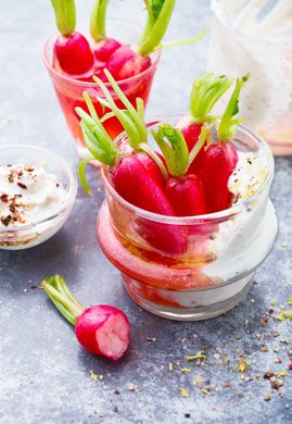 7. Au moment de servir, faites griller des tranches de pain et disposez sur la table la crème de radis, le beurre de radis coupé en rondelles, les tranches de pain et des radis supplémentaires pour que chacun se prépare ses tartines.
