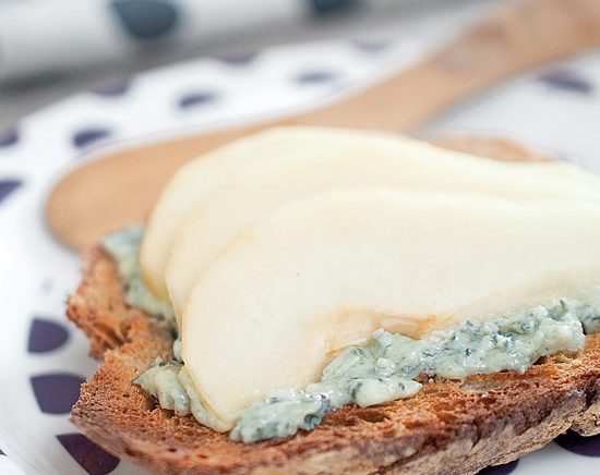- Dépose sur chaque tartinette un petit morceau de poire.