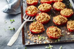 Tomates au four, crumble parmesan