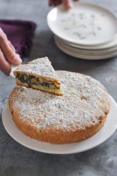 Préparer la pâte : verser la farine et la levure dans un saladier, former un puits et ajouter l’œuf battu, l’huile d’olive, le sel, le sucre, l’eau, le zeste de citron. Bien mélanger. Laisser reposer 2h dans un linge humide au frais.