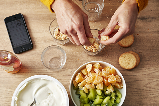 - Emietter grossièrement 1 palet breton dans chaque verrine.