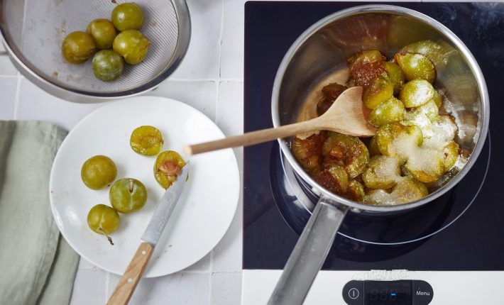 - Les faire confire dans une casserole avec le sucre. Réserver.