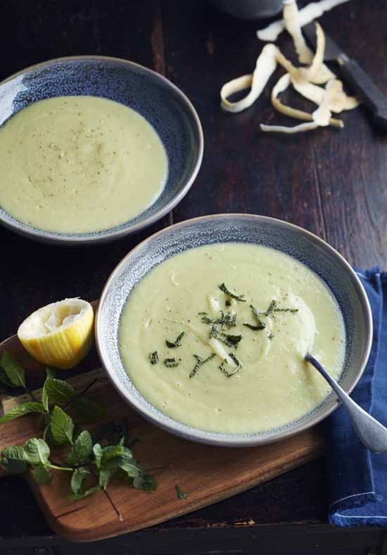 Saler, poivrer et parsemer de coriandre et de menthe ciselées juste avant de servir.