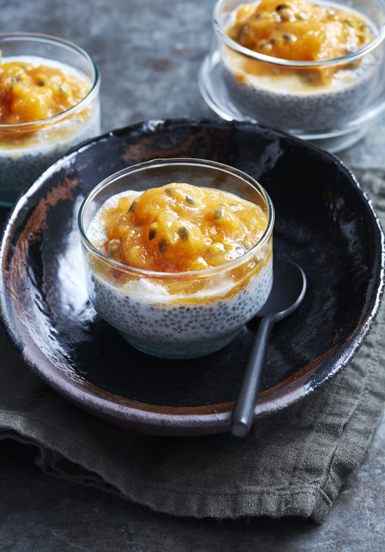 - Dans un grand bol, verser le lait de coco, le lait d’amande, le sirop d’agave, les zestes de citron et les graines de chia. Bien mélanger et répartir dans les verrines. Placer au frais pour 3 heures (la préparation va prendre du volume ; les graines deviennent légèrement gélatineuses en absorbant le liquide).