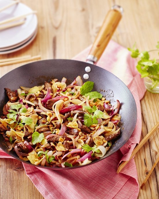 Astuce « tendreté » : pour que la viande soit extrêmement tendre, mélanger les lamelles de bœuf avec ½ c à c de bicarbonate de soude et 2 c à s d’eau. Réserver pendant 12 h puis utiliser les lamelles de bœuf en suivant la recette.