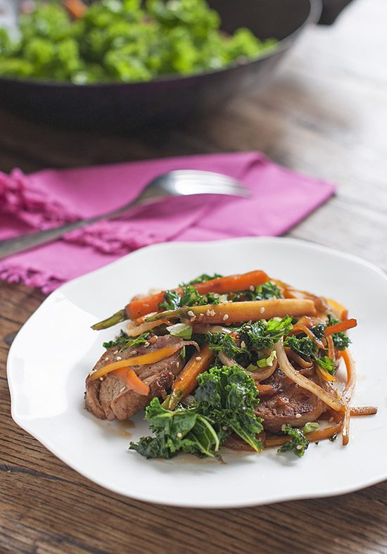 Ajouter le chou kale, baisser un peu le feu et couvrir. Laisser cuire environ 5 min. Remuer puis laisser cuire encore 5 minutes à découvert en remuant de temps en temps.