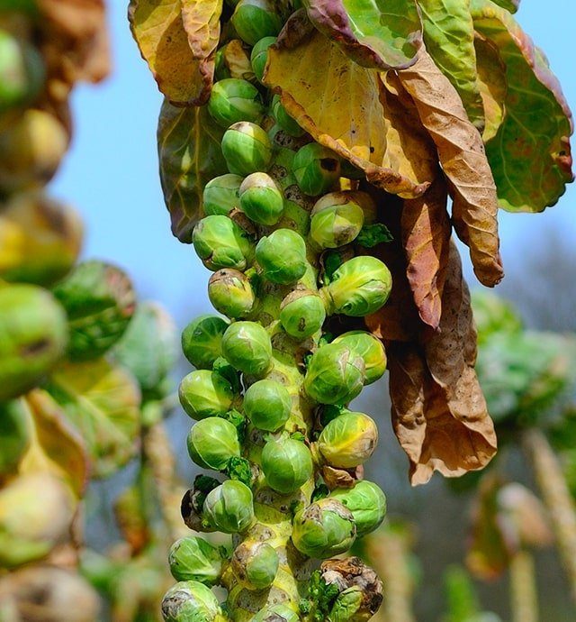 La récolte du chou de Bruxelles débute dès les premières gelées de septembre jusqu’en à mars, lorsque les “pommes” ont atteint entre 2 et 4 cm de diamètre.