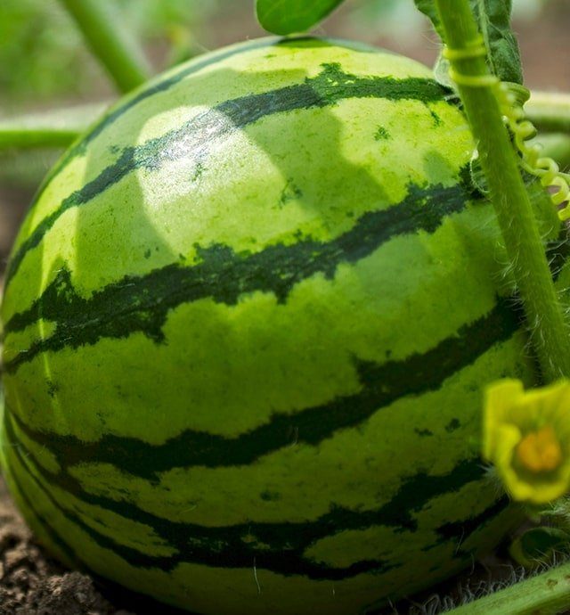 • De la même famille que les courges, la pastèque se présente sous la forme d’une plante à tiges rampantes qui peut atteindre plusieurs mètres de long. Elle produit de grosses feuilles nervurées et des fleurs.