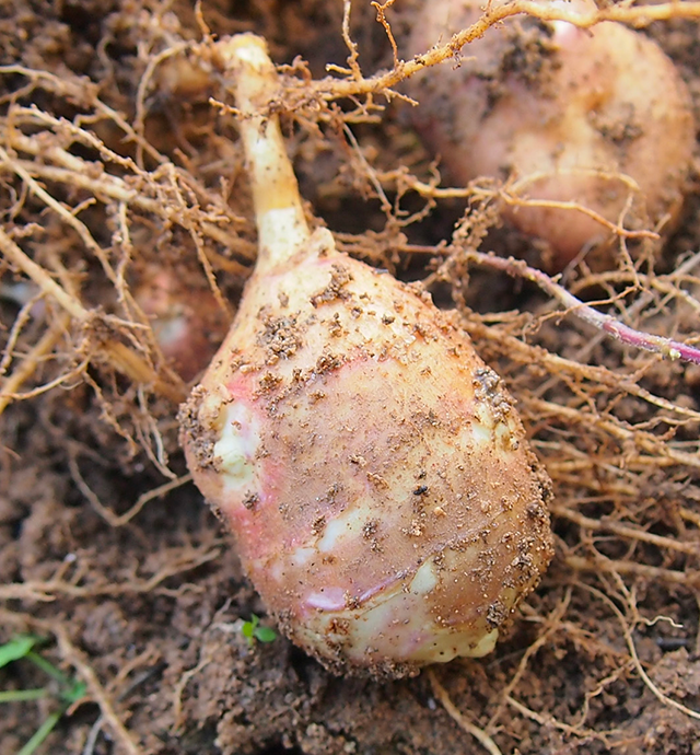 - En se développant, la plante donne naissance à plusieurs tubercules, exactement comme la pomme de terre.