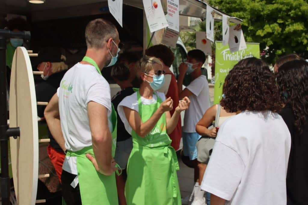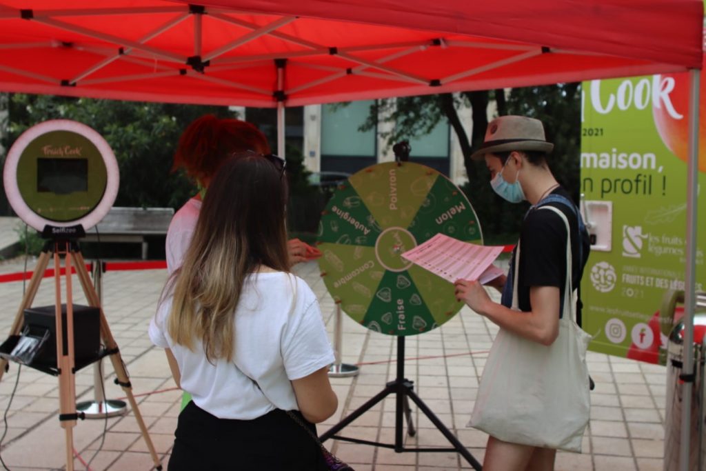 Le Fraich’Cook Tour, c’est 5 animations inédites autour de notre food truck : démos cuisine, roue des fruits et légumes, informations anti-gaspi et borne à selfie. A son bord, un influenceur, dans le public, autour de la roue, un chef cuisinier et un diététicien. Découvrez le programme en détails.