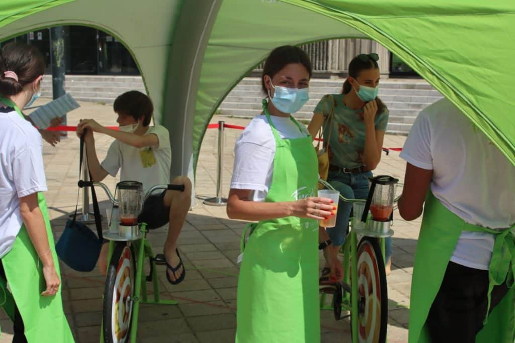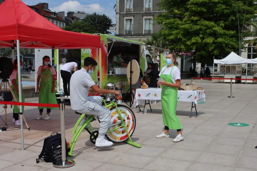 A la force de vos jambes, vous pourrez mixer des smoothies originaux. A vous de pédaler !