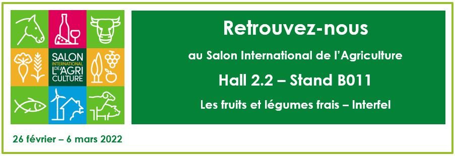 Du 24 février au 3 mars 2024, les fruits et légumes frais seront présents au Salon International de l’Agriculture. Au programme, de nombreux ateliers et animations pour découvrir les fruits et légumes. Rendez-vous à Paris Expo Porte de Versailles, Pavillon 2.2, Stand B017.