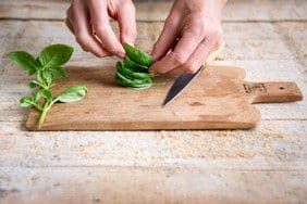 Pour ciseler des herbes à feuilles telles que la menthe, le basilic, la sauge ou la verveine : rien de plus simple. Elles apportent à vos préparations quotidiennes une note fraîche et parfumée.