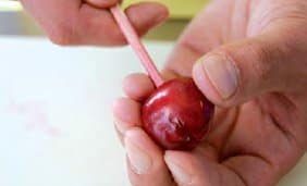 Certains recommandent le trombone : enfoncez la boucle triangulaire du trombone dans la cerise en