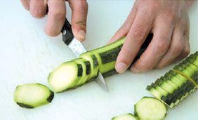 Rondelles de courgettes – Pour émincer des courgettes, coupez-les transversalement ou légèrement en biais, en rondelles plus ou moins