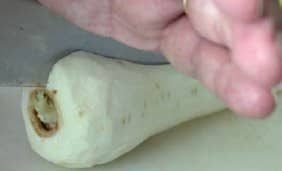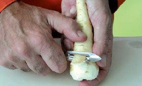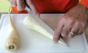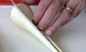 Pelez les panais. Pincez le bout le plus fin entre le pouce et l’index.