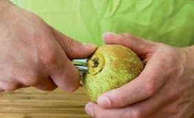 Épluchez la poire de manière à maintenir sa forme régulière.
