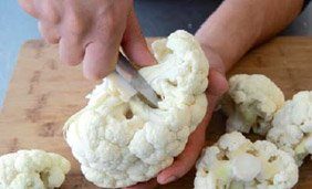 Divisez la pomme du chou-fleur en bouquets réguliers.
