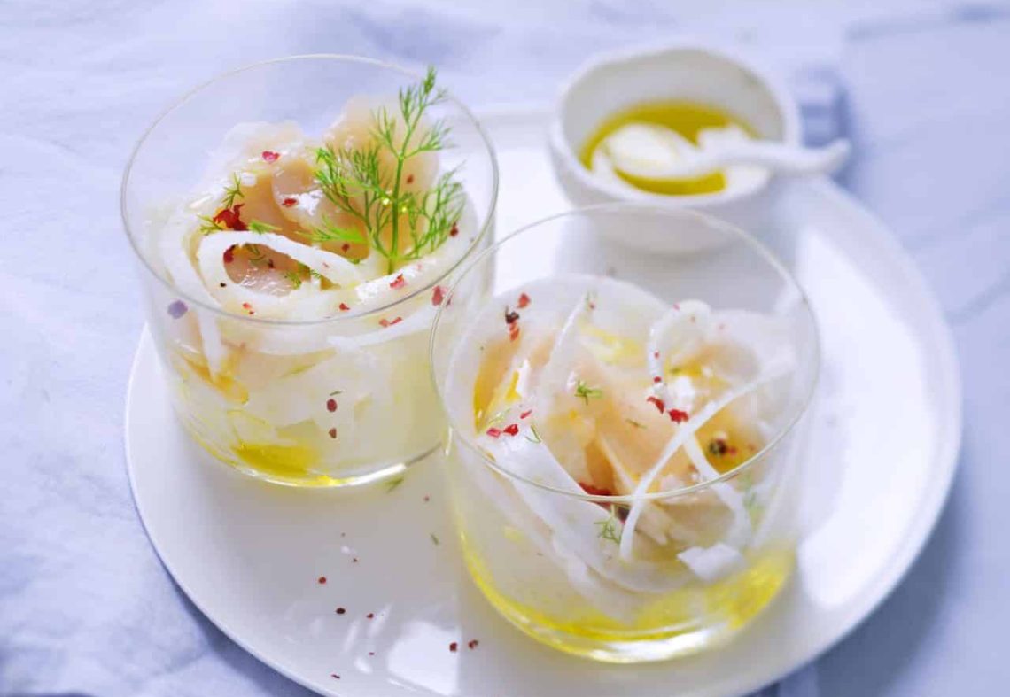 Ceviche de cabillaud, tartare de rougets ou de St Jacques.