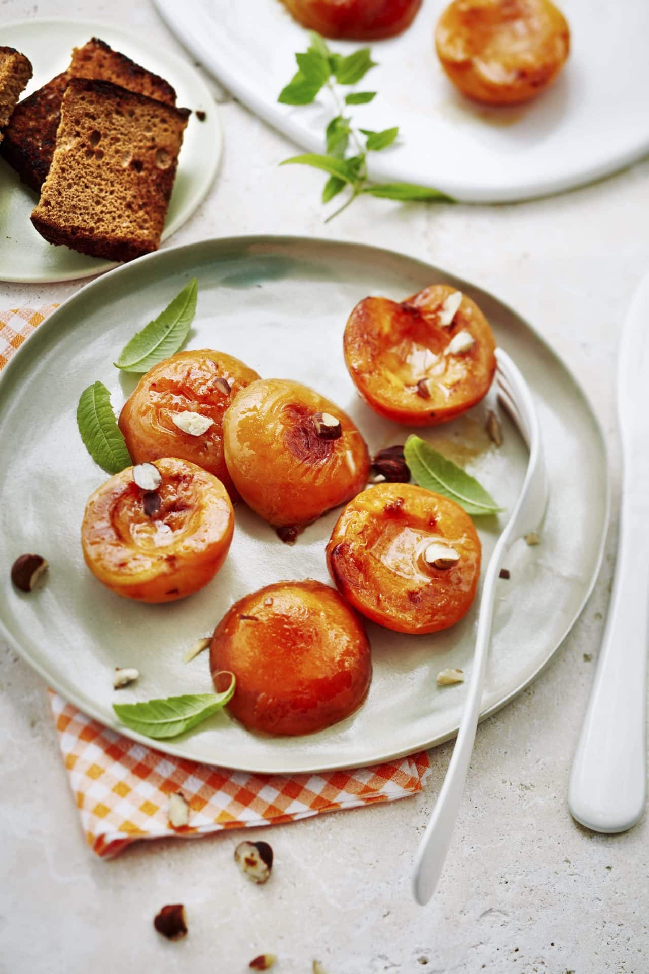 Abricots à la plancha, verveine et noisettes