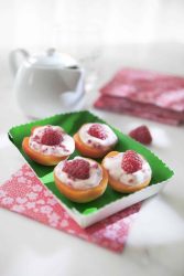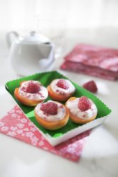 - Laver les abricots. Les couper en 2 pour ôter les noyaux. Les garnir de cette crème. Décorer chaque bouchée d'une demi-framboise.