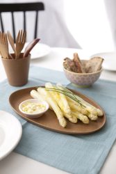 - Egoutter les asperges et les laisser tiédir. Servir les asperges accompagnée de leur sauce au citron.