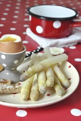 - Servir les asperges avec les œufs coque, juste ouverts et légèrement salés.