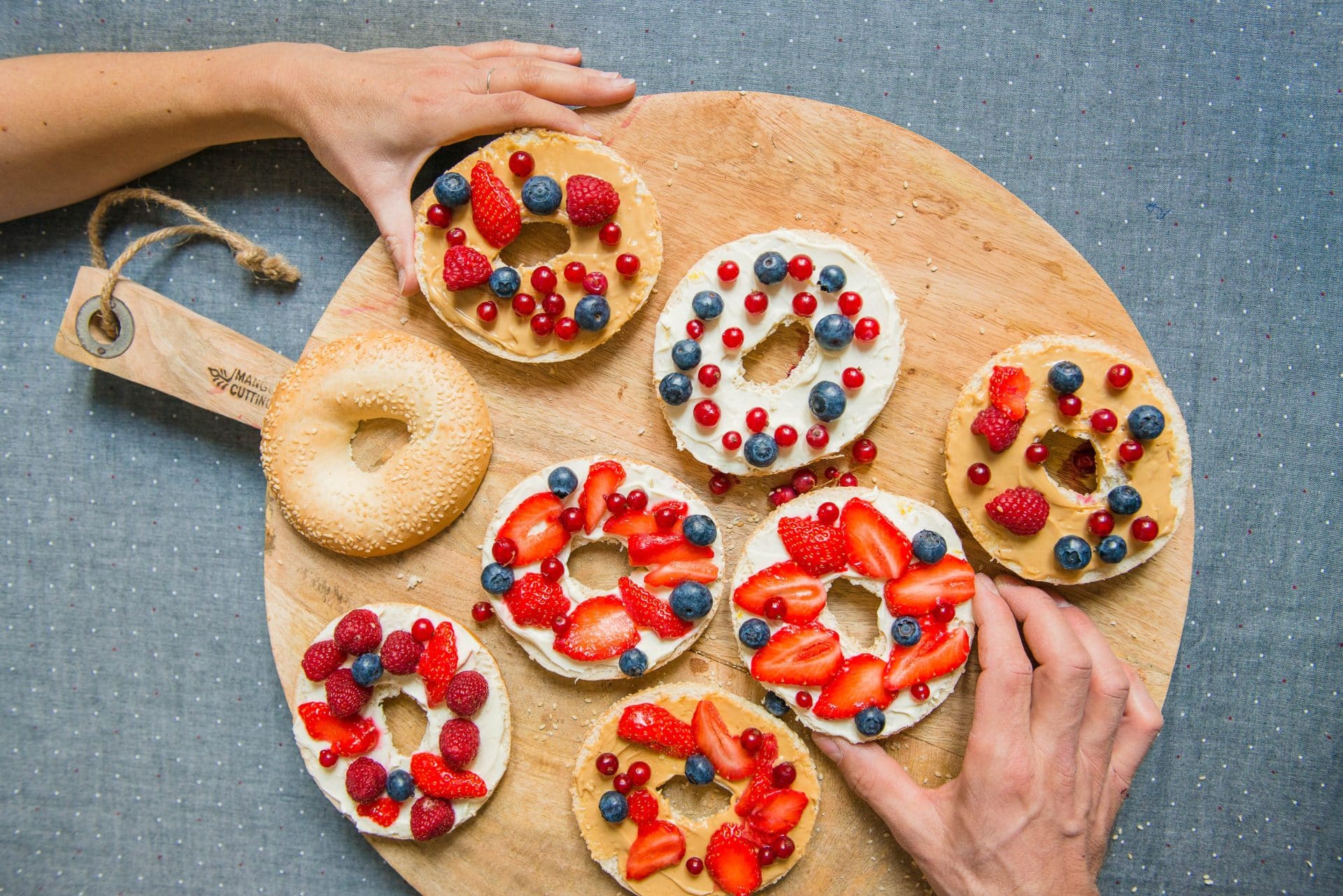 - Répartir les fruits harmonieusement sur les bagels.