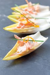 - Dépose sur chaque feuille d'endive une cuillerée de ce mélange. C'est prêt !