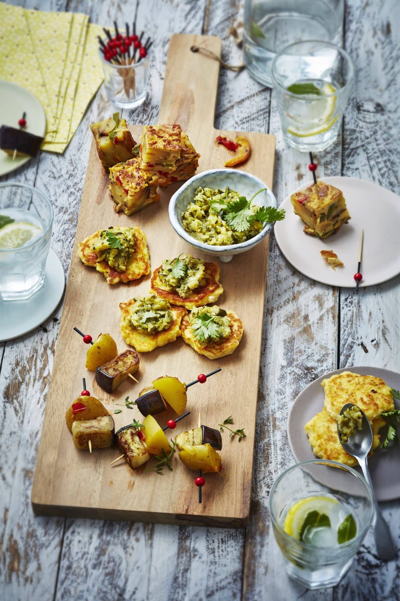 Bouchées à partager - Mini brochettes aubergines-pommes de terre