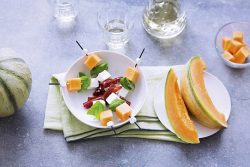 - Sur une pique, alterner un cube de melon, une bille de mozzarella, une feuille de basilic et un petit rouleau de viande des Grisons.