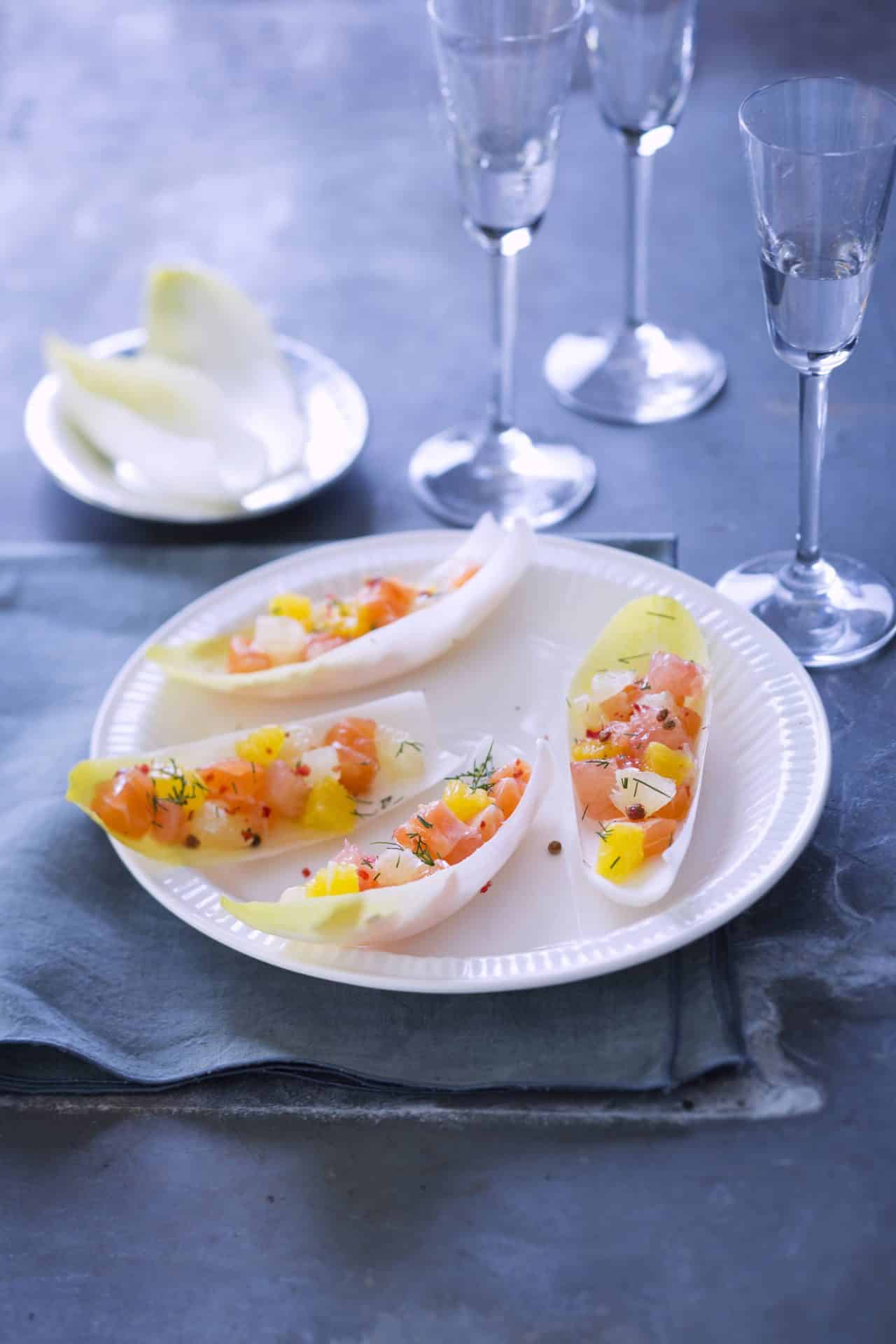 Bouchées d’endives au saumon frais et dés d’agrumes