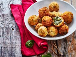 - Façonner des boulettes puis les panner en les roulant successivement dans la farine, le blanc d’œuf puis la chapelure.