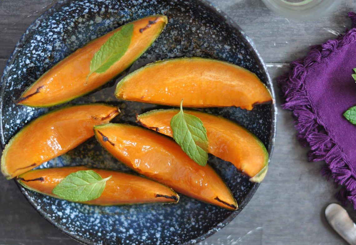- Couper le melon en deux et retirer les graines à l'aide d'une cuillère. Le couper en tranches et retirer la peau en glissant la lame d'un couteau entre la peau et la chair. Tailler les tranches de melon en cubes.