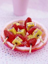 Brochettes de mangue et de fraises