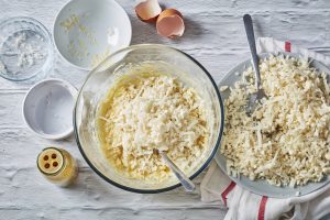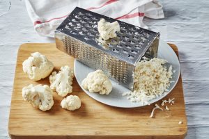 - Laver le chou-fleur. Le râper à l’aide d’une râpe à gros trous. Éplucher l'oignon et l’émincer finement.