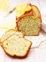 Petit plus : vous pouvez aussi préparer un simple glaçage en mélangeant 75 g de sucre glace avec le jus du demi citron restant avant de badigeonner le dessus du cake encore chaud.