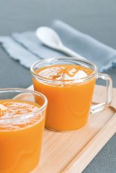 Variante sucrée : préparées en dessert, les carottes sont cuites avec un peu de sucre et des zestes de citron. En fin de cuisson, une fois la soupe mixée, elle est servie cette fois surmontée d'un nuage de crème chantilly (maison ou du commerce).
