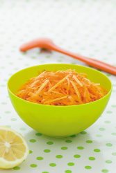 - Râper les zestes de citron sur les carottes (au zesteur ou à l'économe en prenant soin de réaliser de très fines lanières sans peau blanche, source d'amertume).