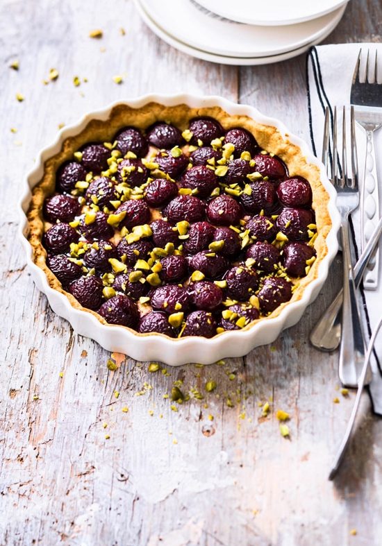 Cerises pochées à l’estragon, crémeux chocolat blanc
