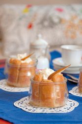 - Déposez au centre de chaque verrine la préparation aux poires.
