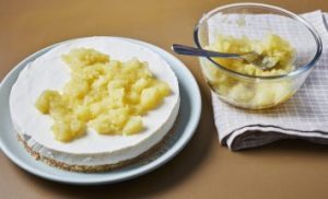 - Démouler le cheesecake, répartir la compote de pommes sur le dessus et déguster sans plus attendre avec du caramel au beurre salé.