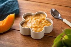 - Une fois la pomme cuite, la mixer avec la chair du melon et les graines de vanille.