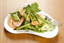 - Servir aussitôt (attention : une fois râpées, les courgettes peuvent rendre un peu d'eau si elles doivent attendre). Facultatif : ajouter les crevettes roses juste avant de servir.
