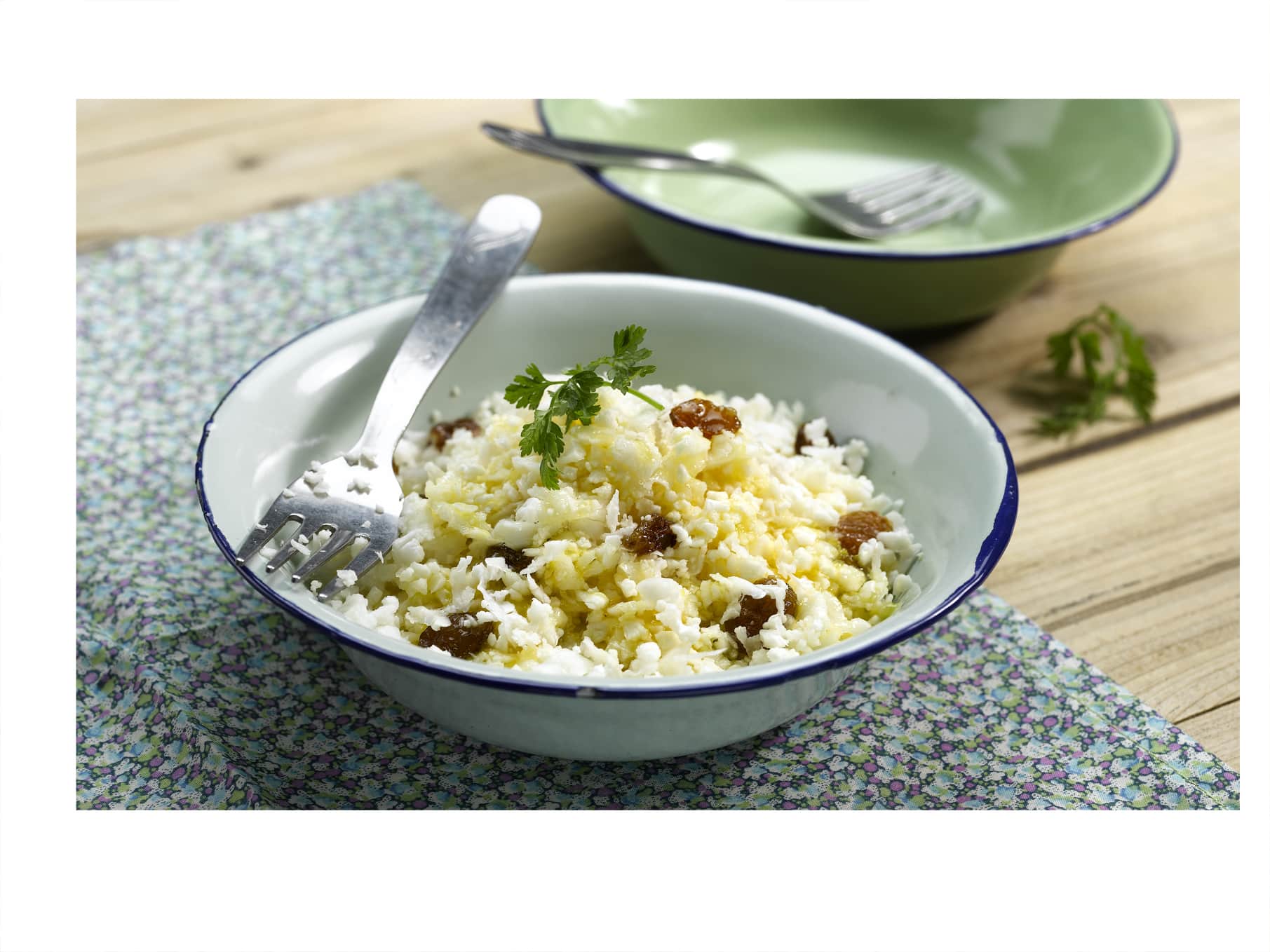 Couscous de chou-fleur aux raisins secs et cumin