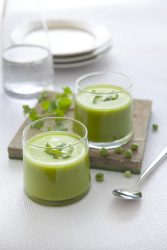 - Servir la crème de petit pois dans des verrines puis parsemer de zestes de citron vert.